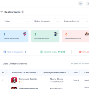 - Gerenciamento completo dos restaurantes cadastrados e de novas solicitações.