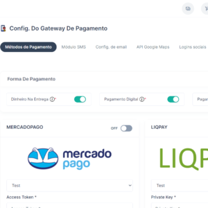 - Gateways de pagamento inclusos como Mercado Pago, PayPal, Stripe e muitos outros.